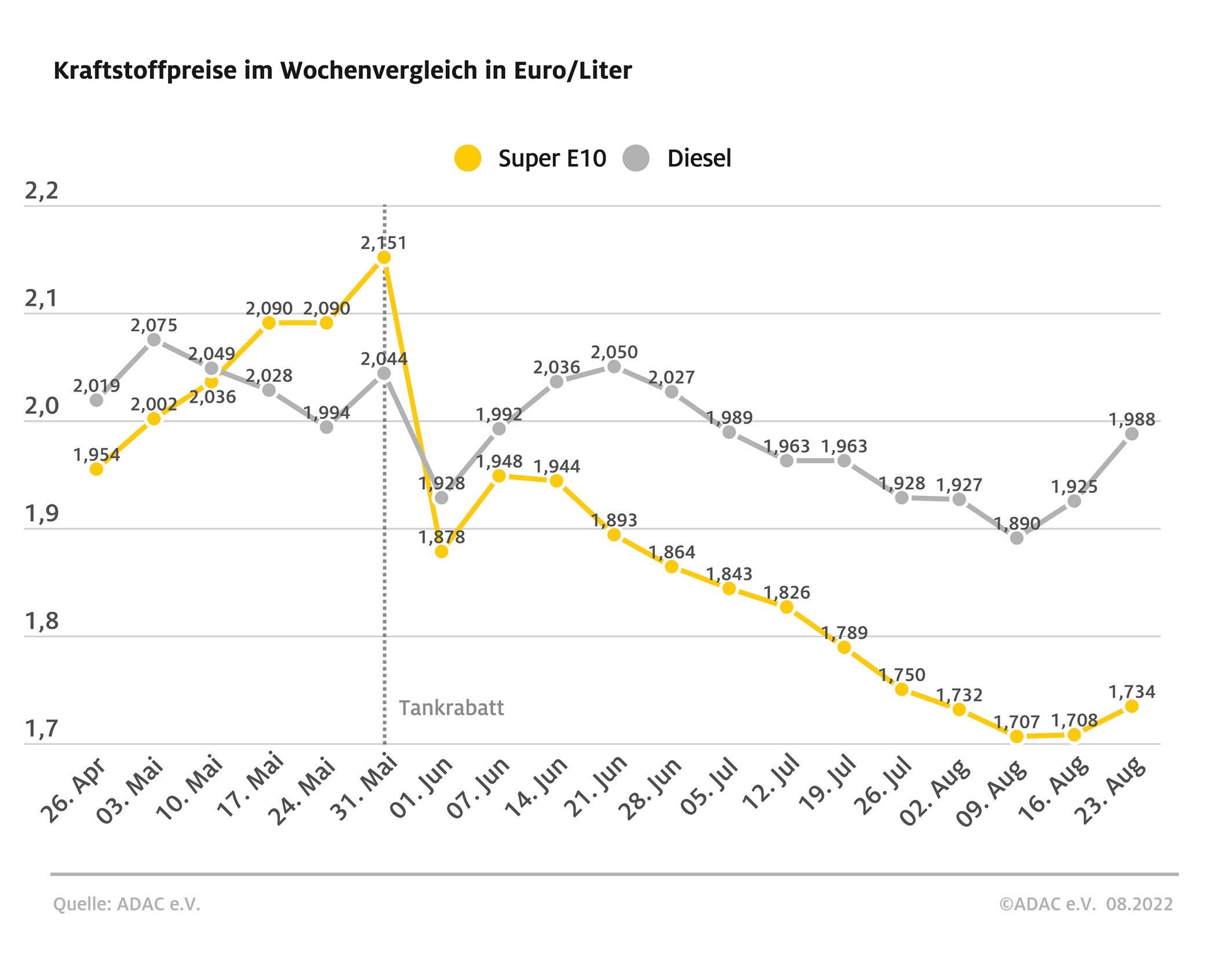Angesichts des nahenden Endes des Tankrabatts zum 31. August sollten Autofahrer bereits heute die Kraftstoffpreise im Blick behalten und grundsätzlich dann tanken, wenn sich hierfür eine günstige Gelegenheit bietet. Laut ADAC ist es nicht zwangsläufig, dass die Spritpreise pünktlich zum 1. September wieder sprunghaft steigen, weil die Tankstellen ein Interesse daran haben, im August noch niedrigversteuerten Kraftstoff in ihre Tanks zu füllen. Damit können sie sich auch über den 1. September hinaus auf dem Markt mit niedrigen Spritpreisen einen Wettbewerbsvorteil verschaffen oder ihre Margen erhöhen.
