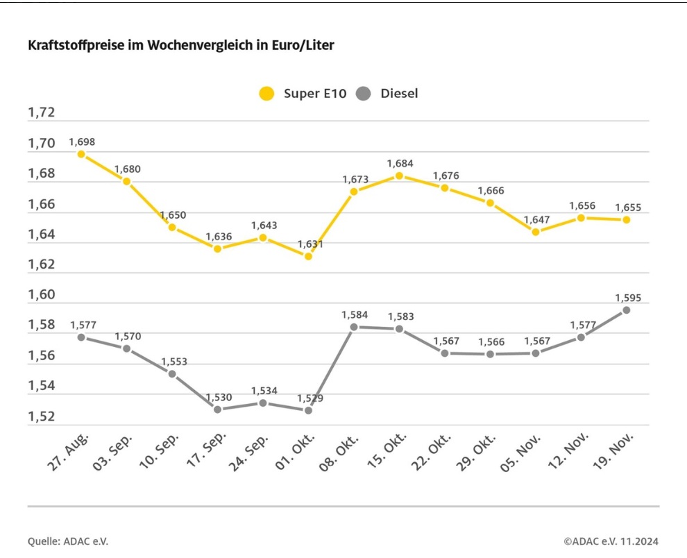 Für Dieselfahrer wird die Fahrt zur Tankstelle erneut spürbar teurer. Im Wochenvergleich verteuerte sich ein Liter Diesel um 1,8 Cent und kostet im bundesweiten Mittel aktuell 1,595 Euro. Das zeigt die aktuelle ADAC Auswertung der Kraftstoffpreise in Deutschland.