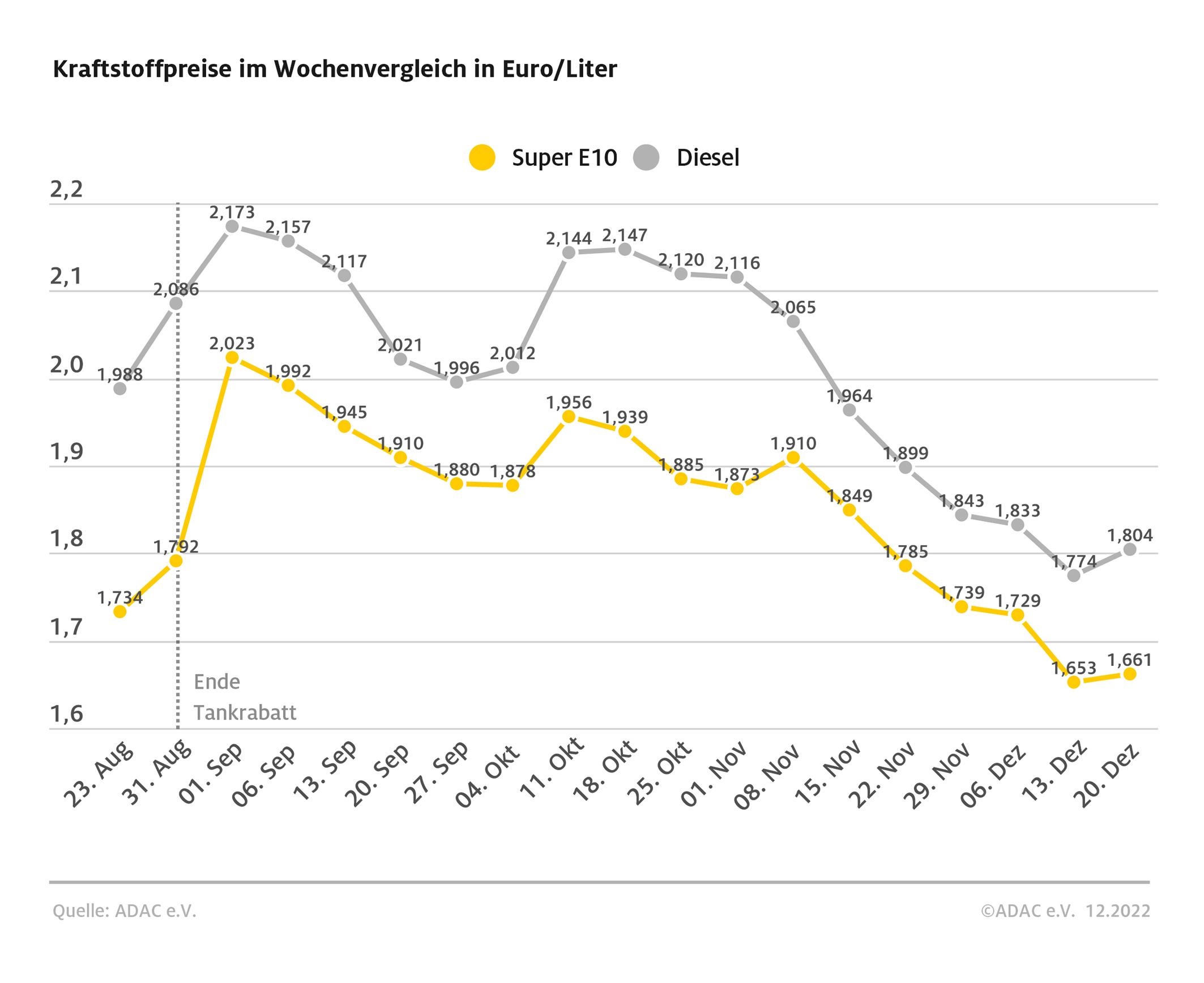 Laut ADAC hatte Diesel am 18. Oktober im Schnitt 2,147 Euro gekostet, seitdem ging es mit dem Preis praktisch nur abwärts. Den Preisrückgang beim Tanken begünstigt hatten insbesondere die niedrigeren Rohölnotierungen, aber auch der wieder stärkere Wettbewerb auf dem Kraftstoffmarkt hat für Entspannung gesorgt.