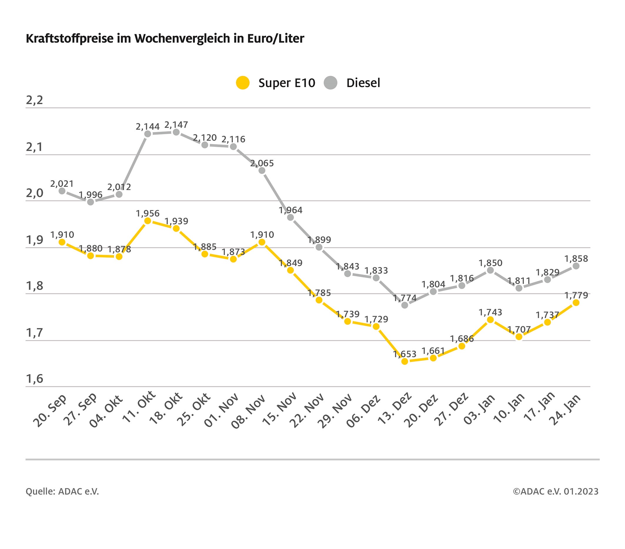 ADAC: Kraftstoffpreise im Wochenvergleich