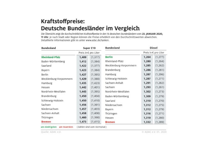 Gleich zu Beginn des noch recht neuen Jahres zeichnet sich eine recht deutliche Talfahrt bei den Preisen ab. Es startete noch recht hoch, zumindest im 3-Jahres-Vergleich mit den höchsten Werten eines Jahresstarts – so ist es nun schon unter das Niveau von 2018 gerutscht. Mit Preisen im Schnitt von aktuell 60,17 € pro 100 Liter…