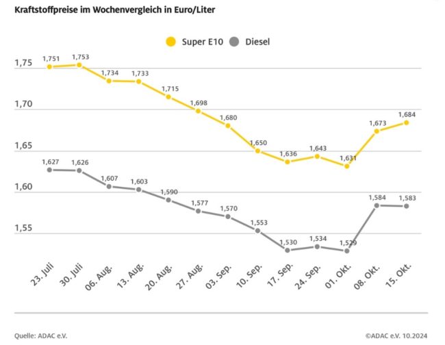 ADAC: Benzinpreis leicht gestiegen, Dieselpreis stagniert – Rohölpreis wieder gesunken