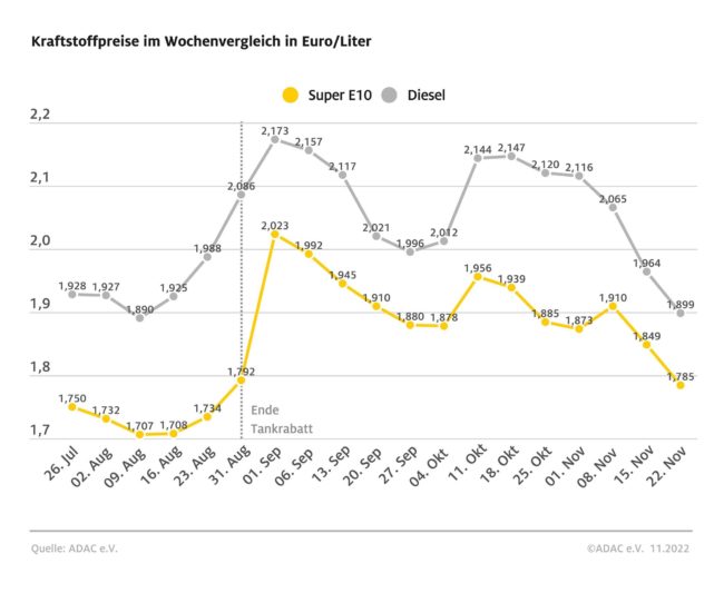 ADAC: Entspannung bei Spritpreisen geht weiter – Beide Kraftstoffsorten spürbar günstiger – Diesel aber noch gut zehn Cent teurer als Super E10