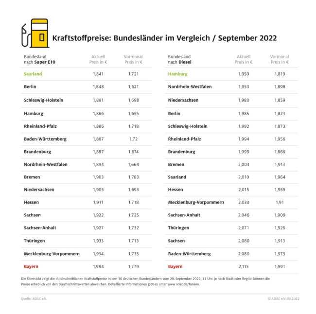 ADAC: Dieselpreis sinkt um fast 10 Cent – Benzin gegenüber Vorwoche um 3,5 Cent niedriger
