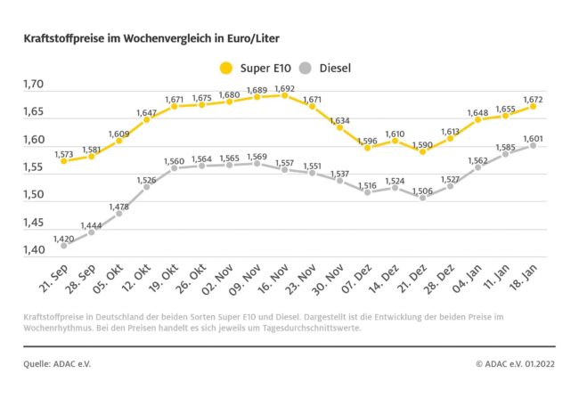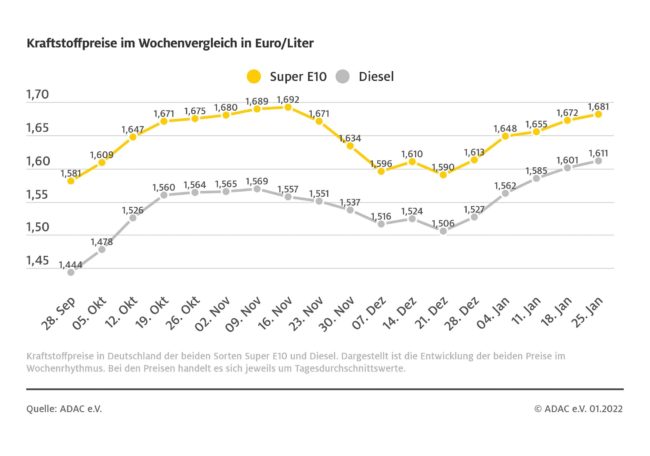 München (ots) – Im Januar jagte bei den Spritpreisen ein Höchststand den nächsten. Während Diesel im ersten Monat des Jahres alle bisherigen Spitzenmarken übertraf, kratzte Benzin knapp am höchsten je ermittelten Preis. Das ergibt sich aus Daten des ADAC in seiner Monatsauswertung der Kraftstoffpreise. So ermittelte der Club am 31. Januar beim Diesel mit 1,637…